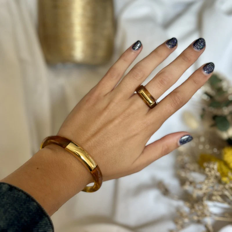 Signée Lucas Jack, ce bijou unique en résine colorée et plaqué or 24k est l’accessoire parfait pour ajouter une touche de couleur et de sophistication à votre look. Pour les femmes audacieuses qui veulent un détail fort et stylé qui fait la différence !