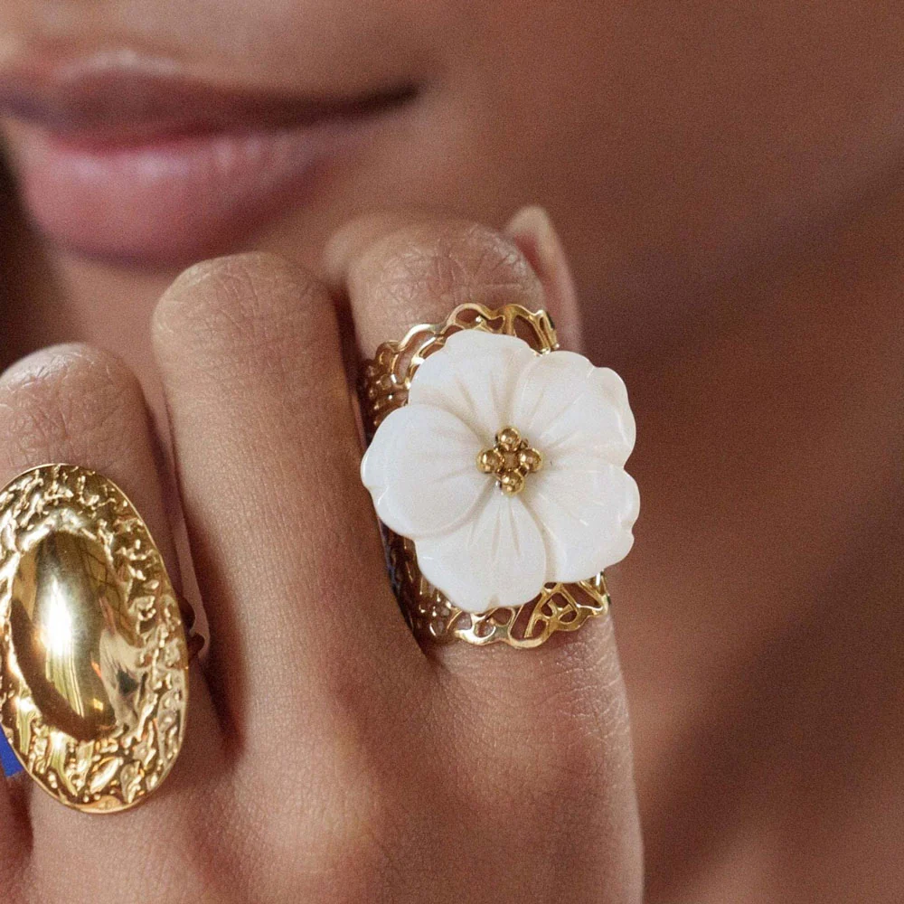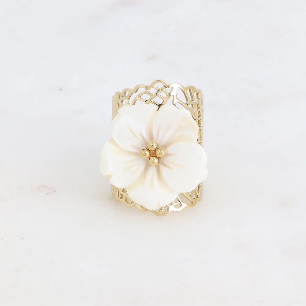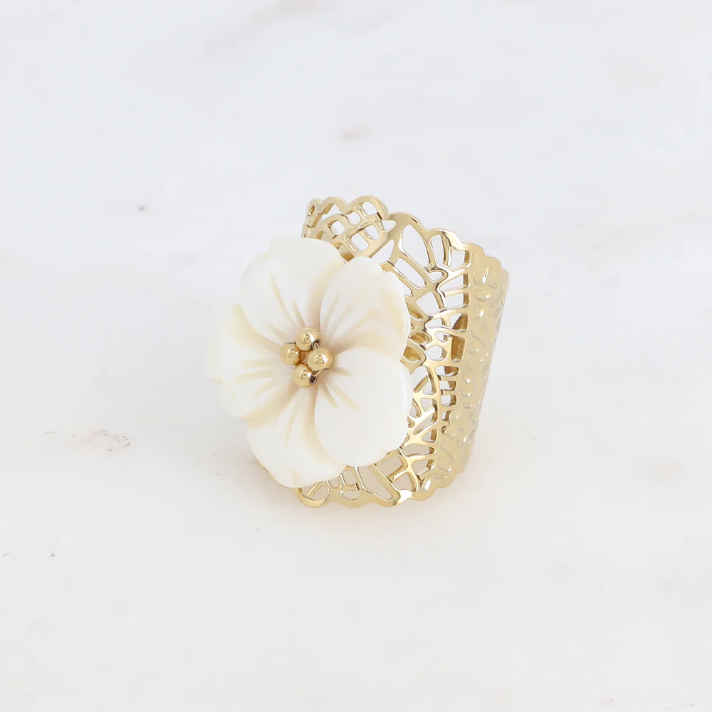 Ajustable, la bague se resserre ou s’agrandit : de la taille 52 à 58Hauteur de la bague: 30 mm Résiste à l’eau et ne noircit pas.