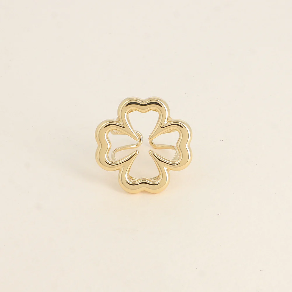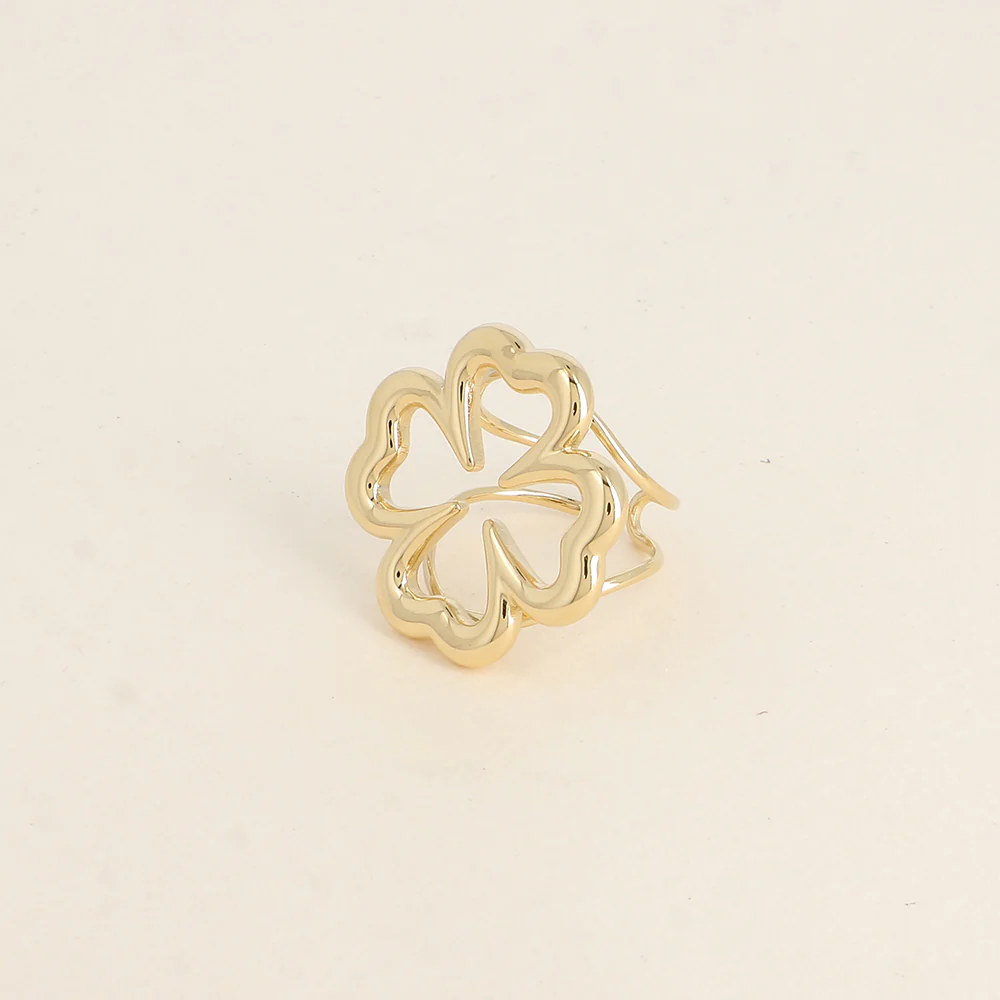 Bague en acier inoxydable composée d’un grand trèfle ajouré.