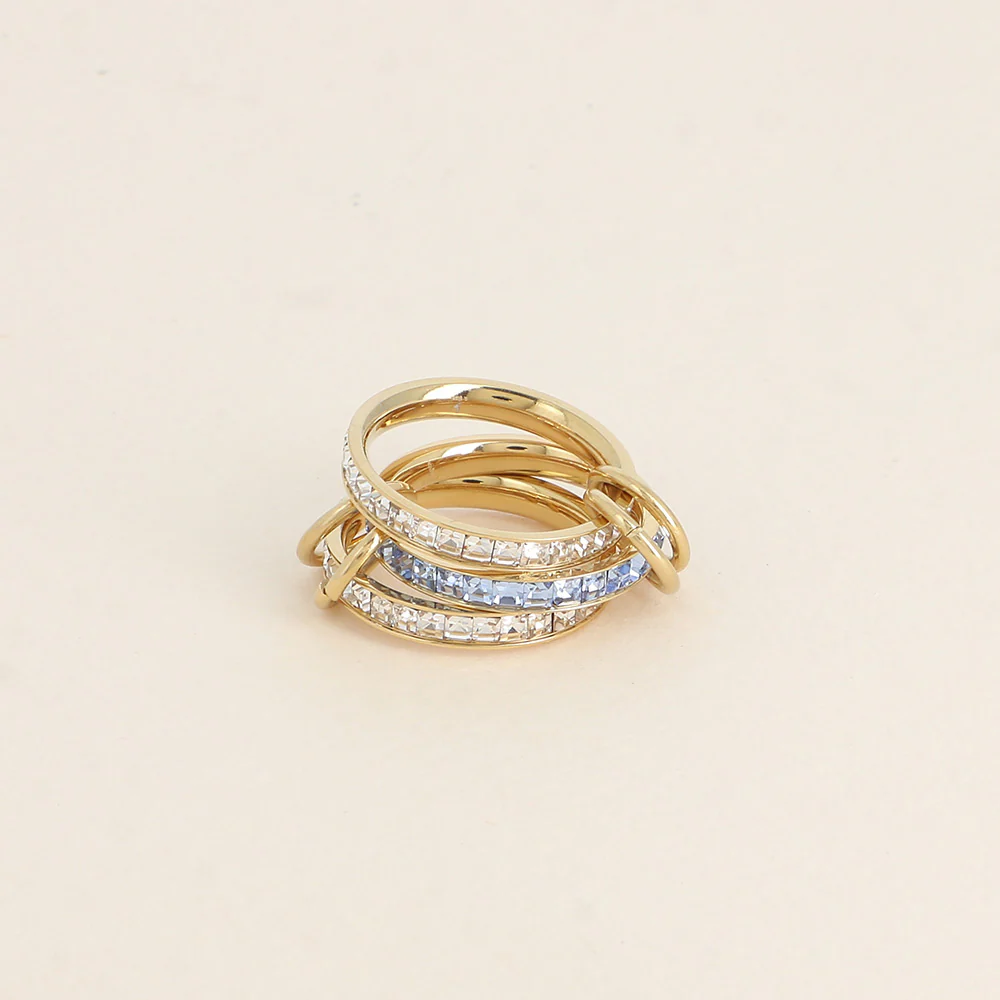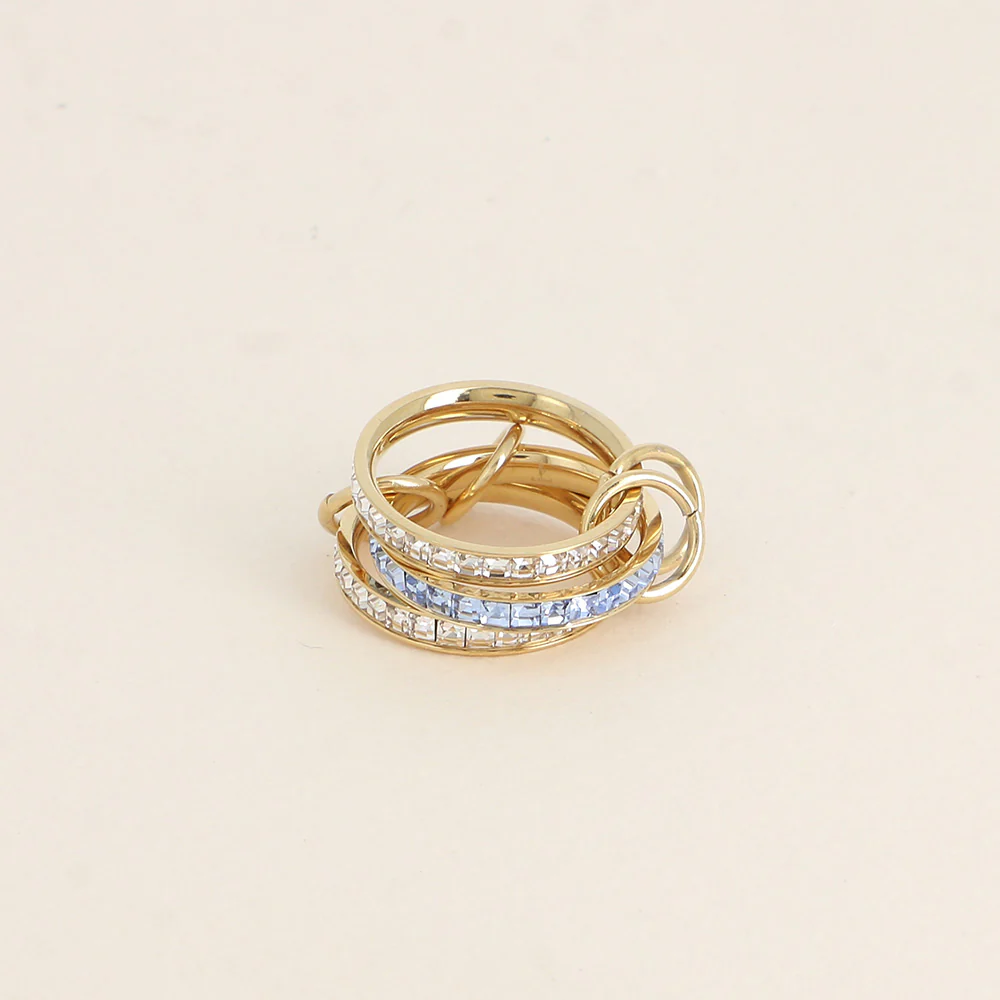 3 bagues en acier inoxydable serties d’oxydes de zirconium et reliées par des anneaux.