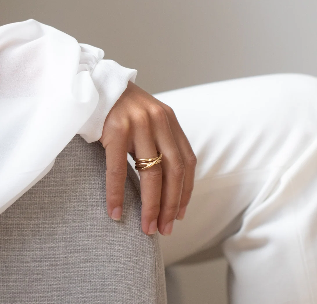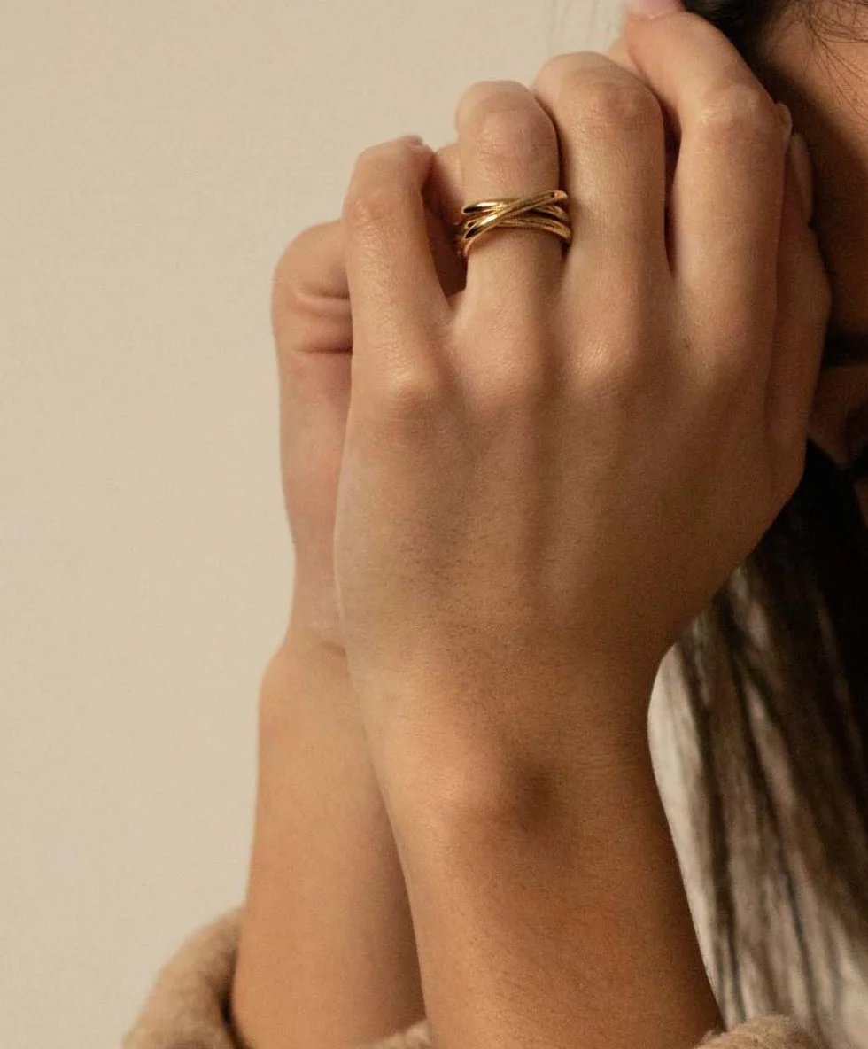 Bague réversible à lacets entremêlés en vermeil MAYRENA. Elle prend différentes formes en fonction des envies. Elle habille à elle seule nos mains.