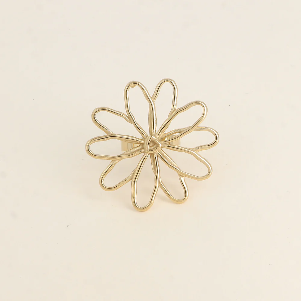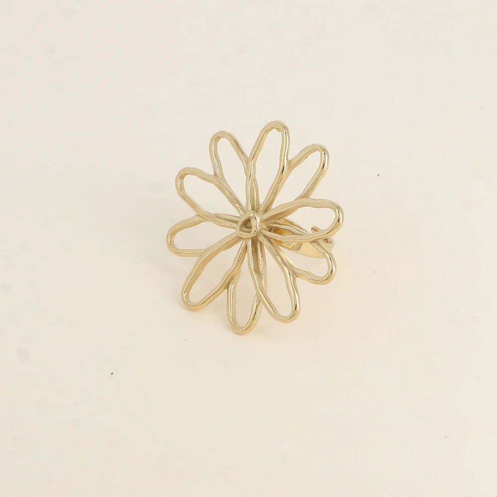 Bague en acier inoxydable composée d’une fleur ajourée.