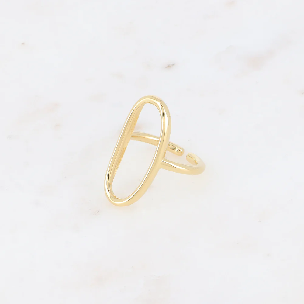 Bague en acier inoxydable composée d’un ovale ajouré lisse.Ajustable, la bague se resserre ou s’agrandit : de la taille 50 à 58Hauteur de la bague: 28 mmEpaisseur de l’anneau : 2 mm Résiste à l’eau et ne noircit pas