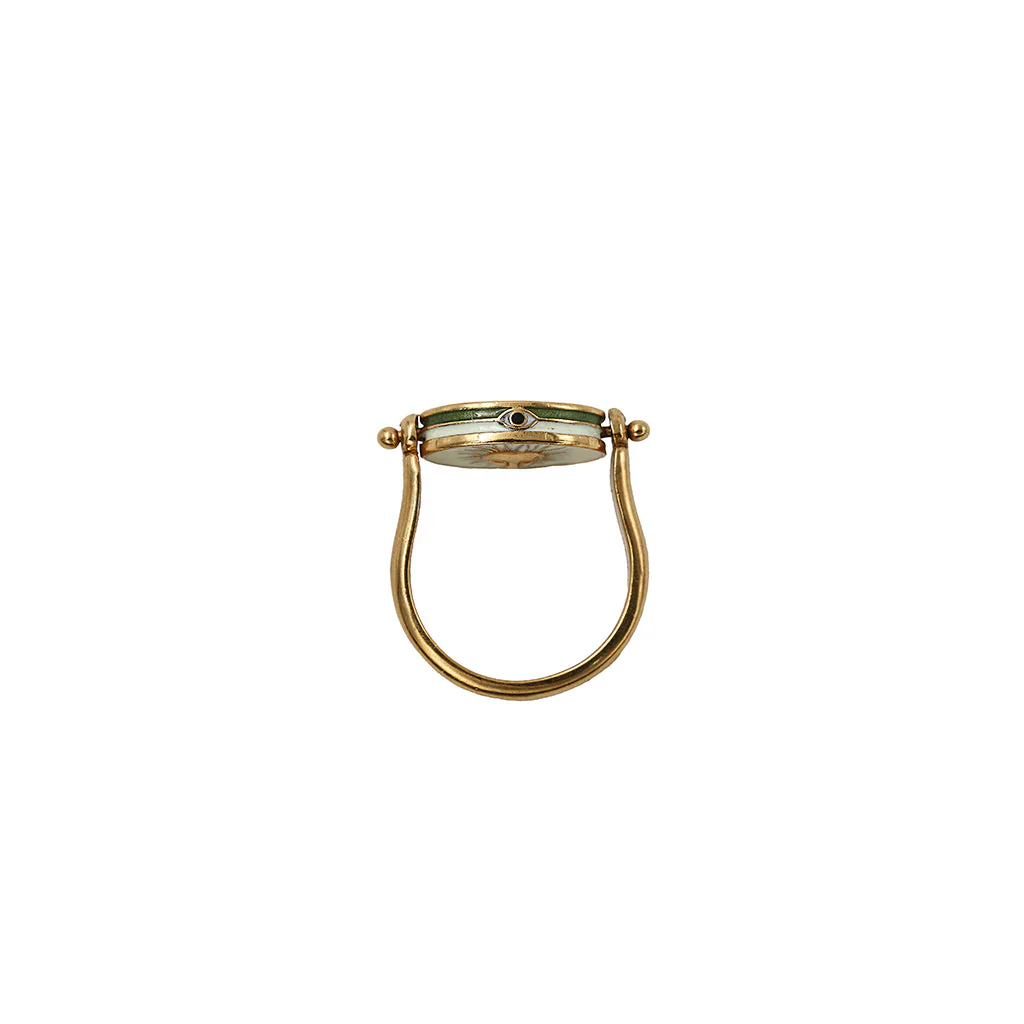En laiton plaqué or 3 microns, elle pivote délicatement pour dévoiler :