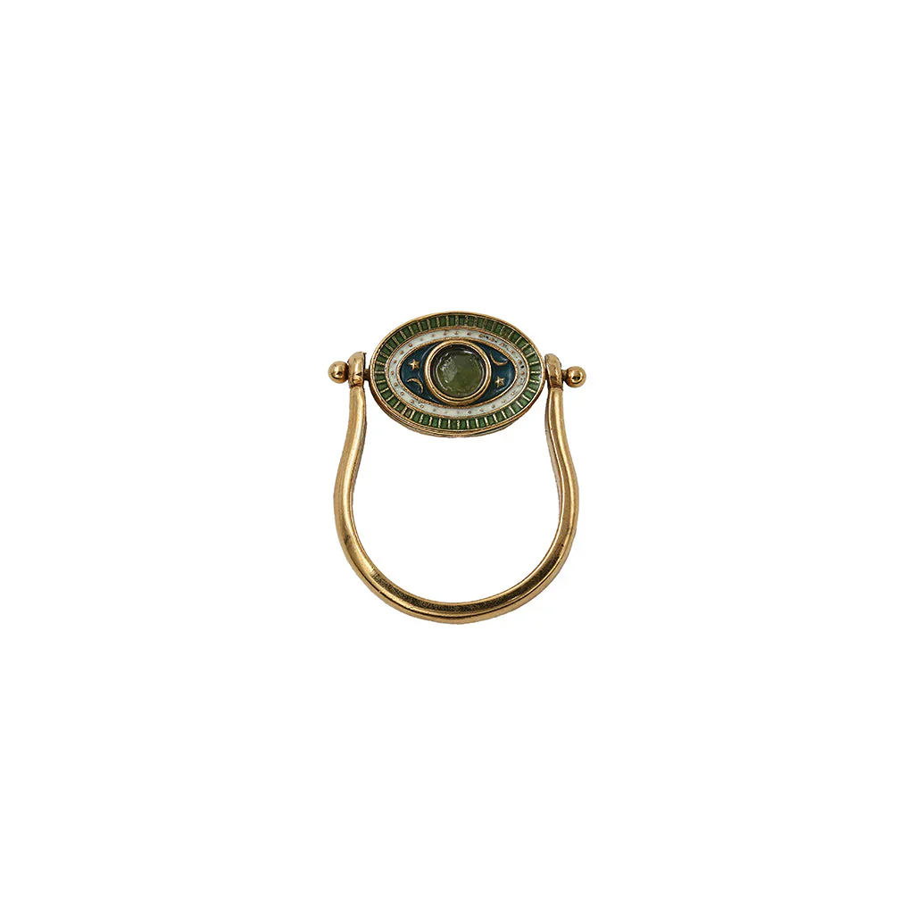 La bague Luna Pivot révèle deux visages, à choisir selon votre humeur ou votre intention. En laiton plaqué or 3 microns, elle pivote délicatement pour dévoiler :– une première face ornée d’une pierre semi-précieuse ronde, sublimée par un contour émaillé,– une seconde face gravée d’un soleil rayonnant, entouré d’un émail ivoire lumineux. Un bijou réversible […]