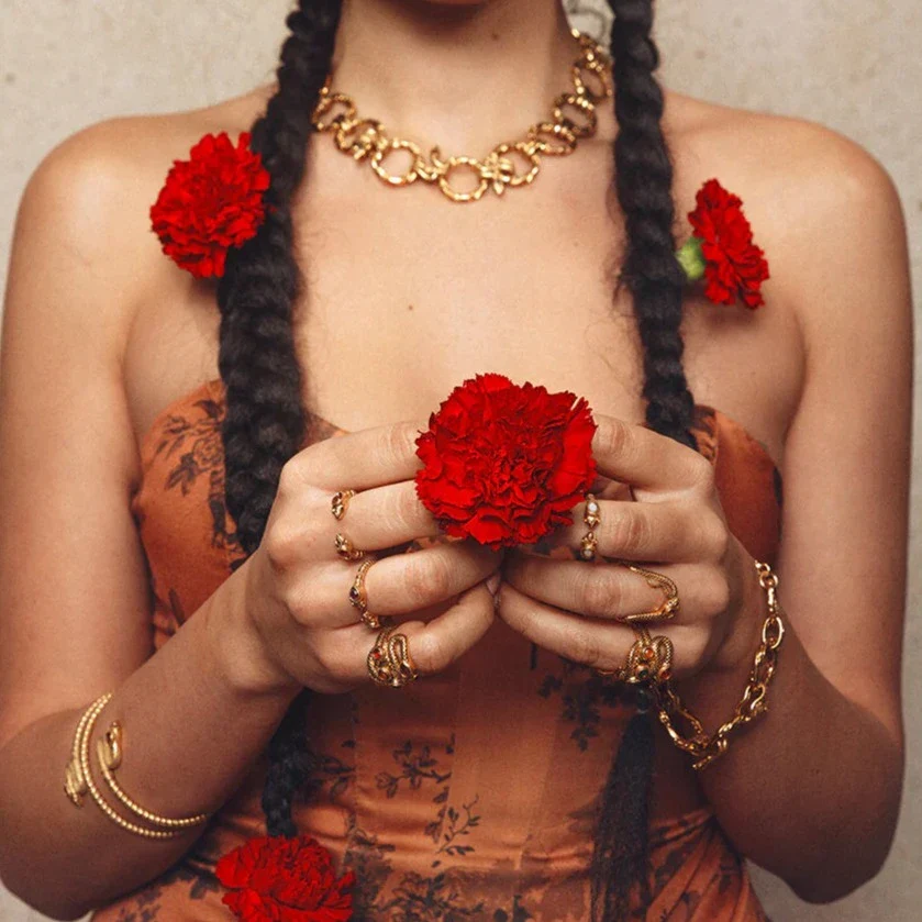 La Bague Sissi par LA2L: une création française en plaqué or, ornée de deux têtes de serpents entrelacées et incrustées d’une agate verte. Fabriquée à la main dans un style bohème, elle est également ajustable pour s’adapter parfaitement à votre doigt. Une pièce unique pour un style assurément singulier.