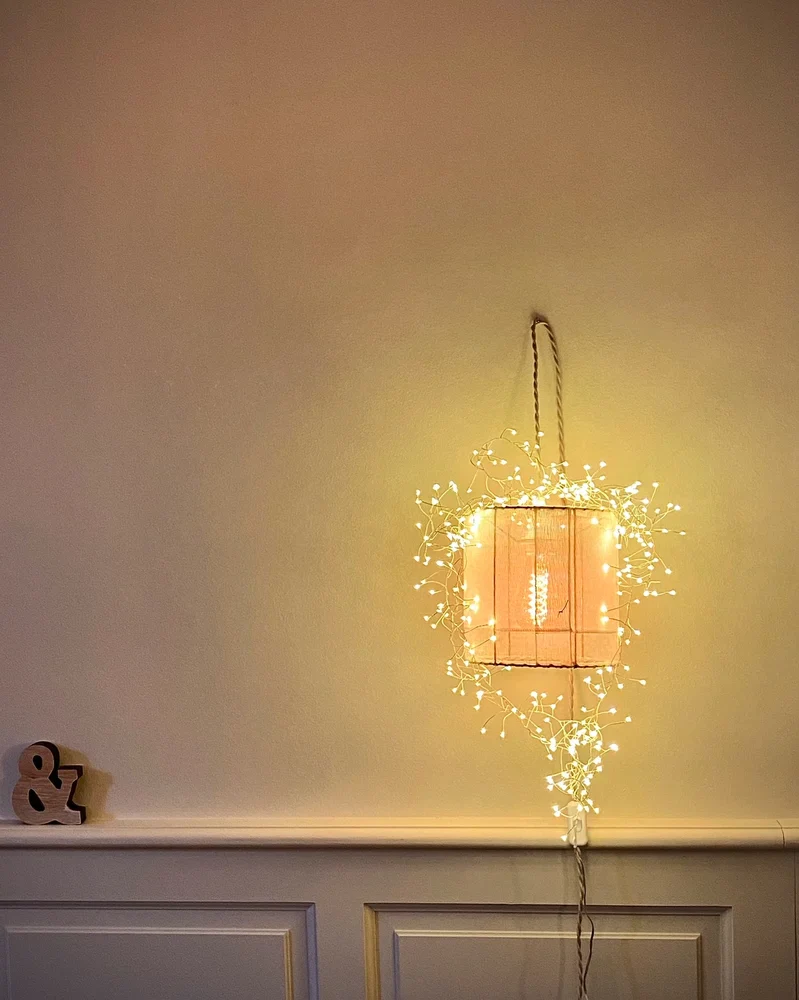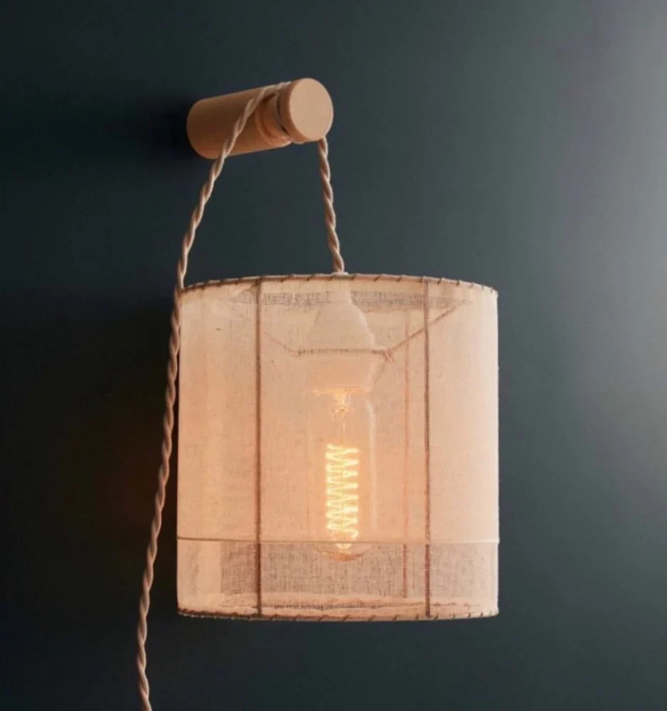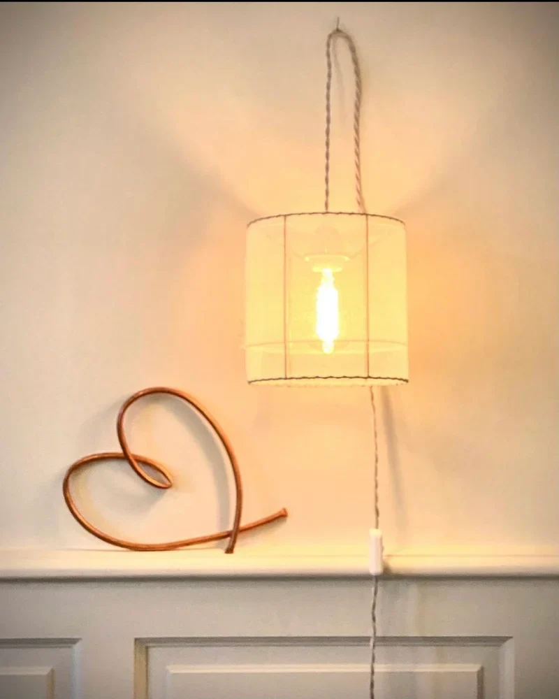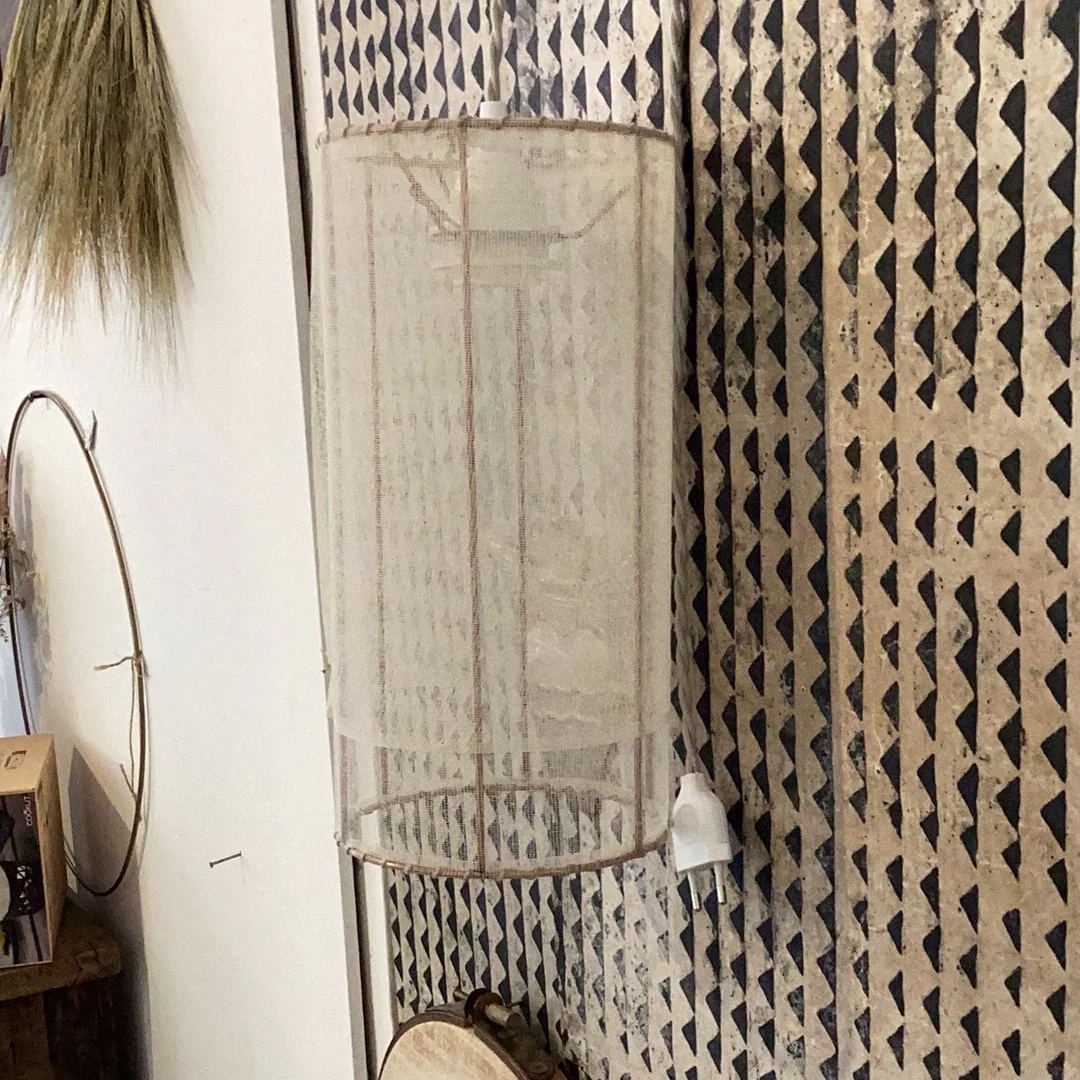 carcasse en métal cuivré (made in France) Tissu gaze de coton brut (made in France) Ficelle de lin sur le haut et le bas de la baladeuse Fait main