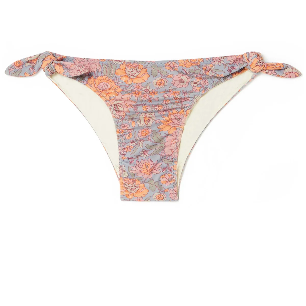 Bas de bikini taille basse, son imprimé fleuri bleuté vous donnera une parfaite allure bohème !Culotte à nouer sur les côtés. Matière recyclée avec indice de protection 50 SPF87% Polyamide recyclé