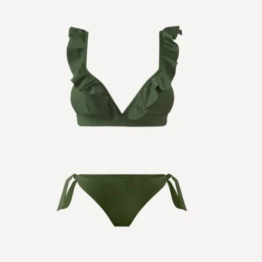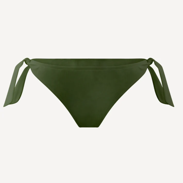 La culotte de maillot de bain, à nouer sur les côtés avec une échancrure légèrement plus accentuée que celle de la culotte classique.