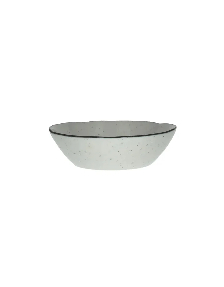 ref: 34310-03 Contraste entre noir et blanc, design à la fois simple et élégant, la vaisselle Basil s’inspire des services émaillés d’antan. La forme des assiettes est légèrement irrégulière et le blanc marqué de petits points noirs.
