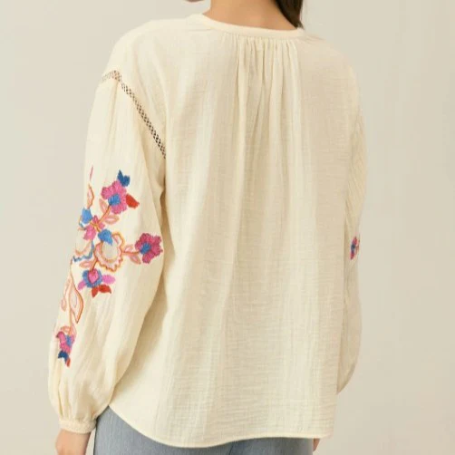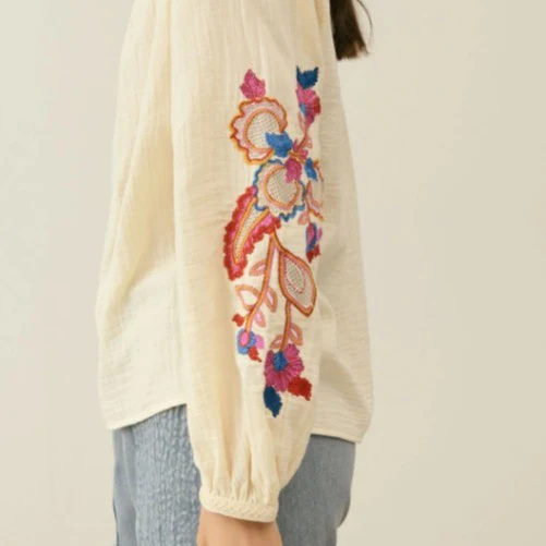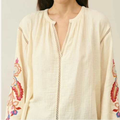 Cette blouse en double gaze de coton est un véritable coup de cœur ! avec sa dentelle ajourée colorée