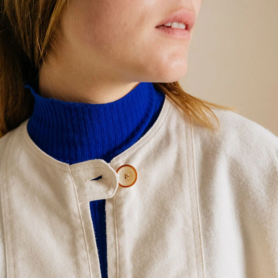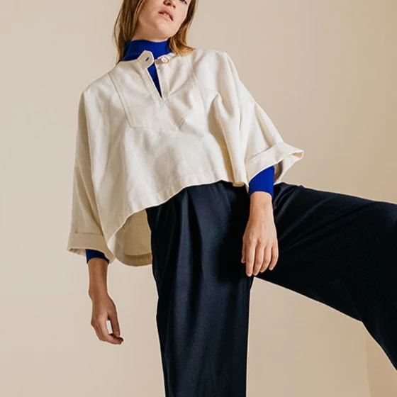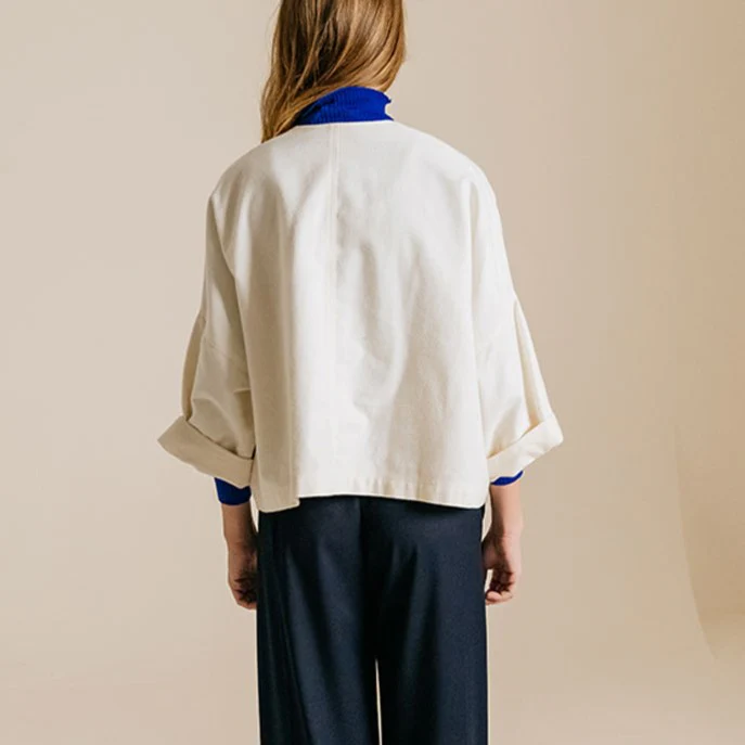 Blouse over size, boutonnée au milieu devant par une patte. Sans col, encolure ronde. Manches longues avec large ourlets Composition : 100% Coton Entretien : Lavage 30° délicat, repassage doux sur l’envers Fabriquée en Tunisie