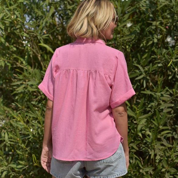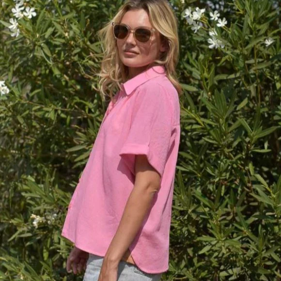 La chemise Chloé est là pour réveiller votre dressing ! Avec sa coupe ample et fluide, son coton ultra léger et son rose vibrant, elle joue à la fois la carte du confort et du style. Portée en chemise, en surchemise ou même nouée à la taille, elle s’adapte à toutes vos humeurs et donne instantanément du peps à une tenue. On la porte fermée, ouverte ou nouée pour une vibe rétro