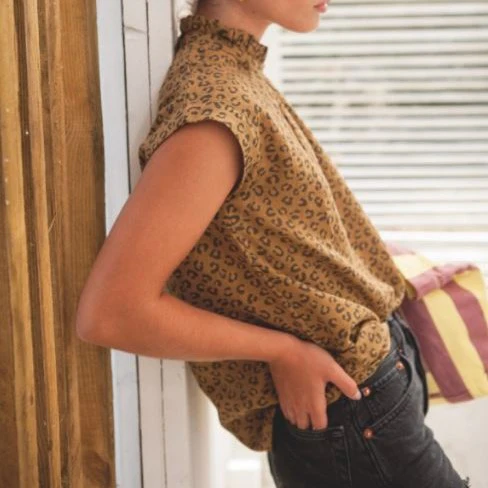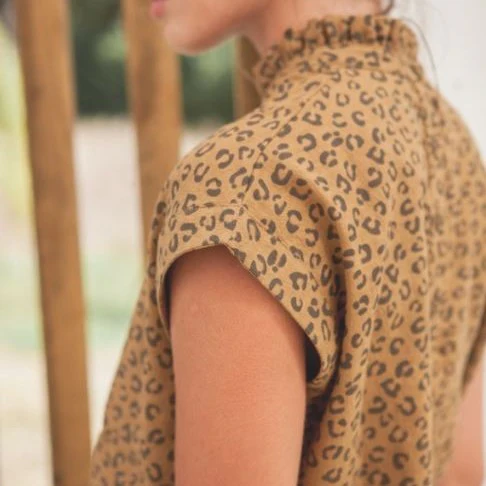Blouse d’été légère imprimé léopard de la saison ! Une gaze de coton douce et respirante au tomber parfait et une coupe estivale, manches courtes et col plissé raffiné. On aime ce modèle pour twister nos jeans et nos shorts de l’été.