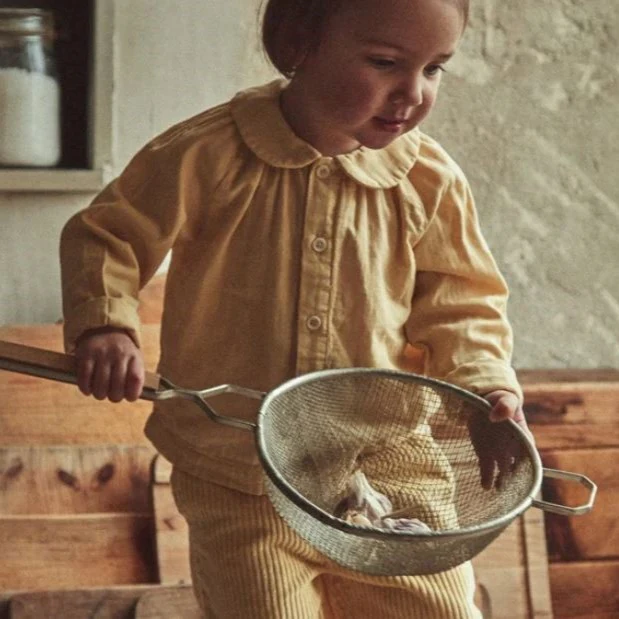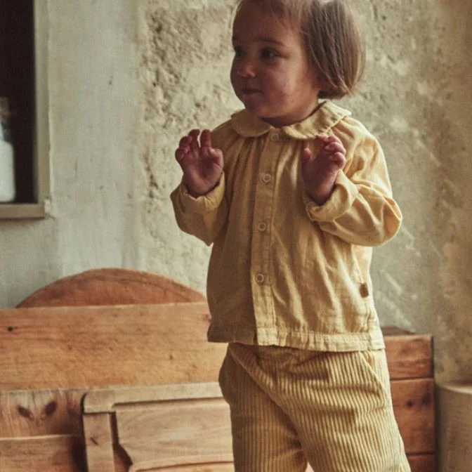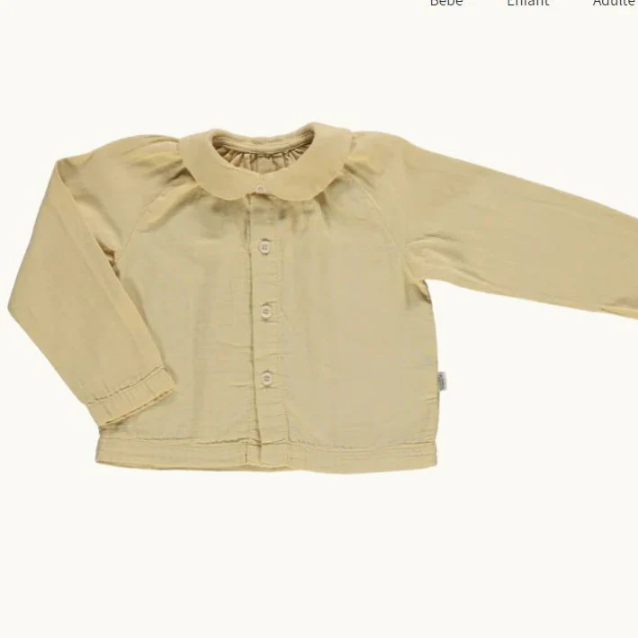 Blouse couleur sable, boutonnable. 100% coton issu de l’agriculture biologique lavable en machine à 30°c. Séchage à l’air libre. Fabriqué au Portugal