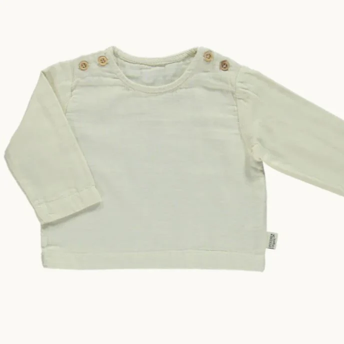 Blouse avec boutons sur l’épaule 100% coton issu de l’agriculture biologique Lavable en machine à 30°c. Séchage à l’air libre Fabriquée au Portugal