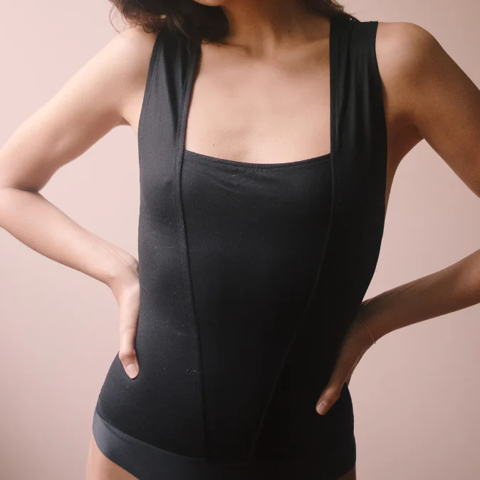 Body en viscose écologique, encolure carrée et bretelles larges croisées au dos. Sa culotte est ultra stretch sans couture avec une fermeture par 3 pressions à l’entrejambe.