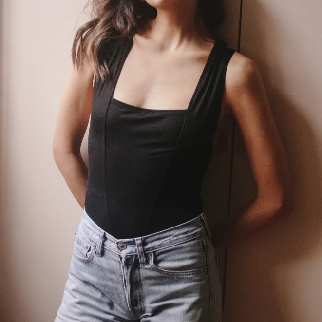 Body en viscose écologique, encolure carrée et bretelles larges croisées au dos. Sa culotte est ultra stretch sans couture avec une fermeture par 3 pressions à l’entrejambe. Composition : Top : 92% Viscose ecovero / 8% ElasthanneCulotte : 80% Polyamide / 20% Elasthanne – Fibres recyclées Entretien : lavage à 30° Fabriqué en Europe