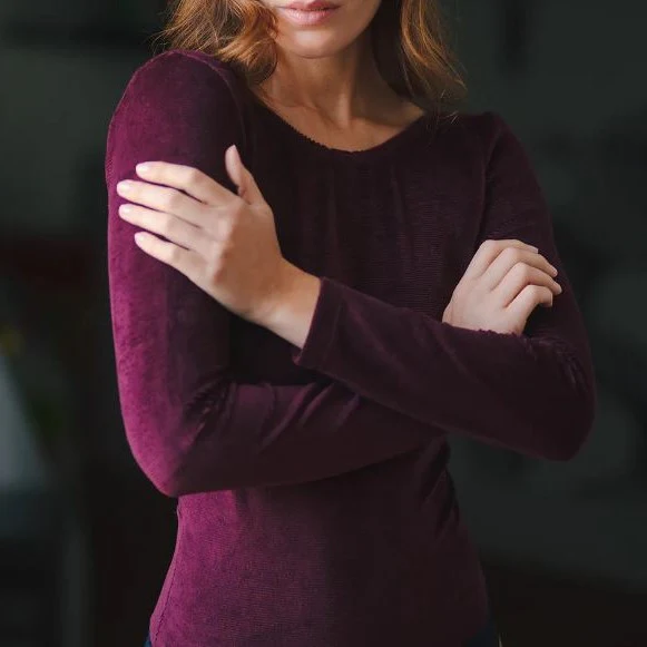 - Encolure arrondie devant pour une allure sobre et intemporelle.