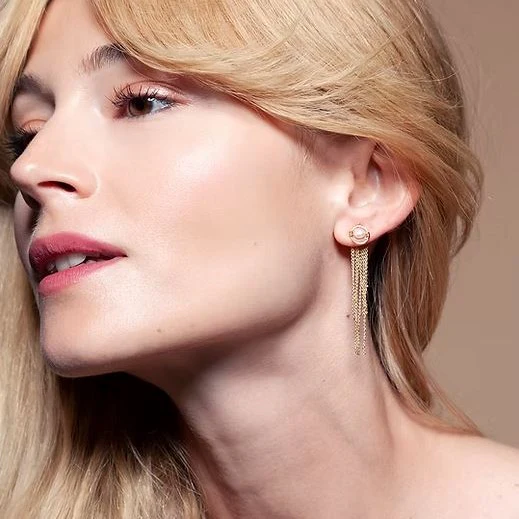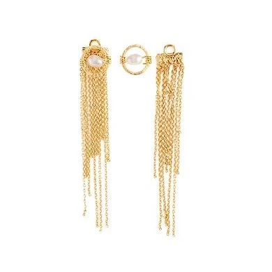 Ces boucles d’oreilles se portent de 2 façons. Vous pouvez porter uniquement l’avant avec la perle ou ajouter la cascade de chaînes à l’arrière de l’oreille en la passant dans la tige. Diamètre avant 0,8 cm. Perle d’eau douce 0,4 x 0,3 cm. Arrière 5 x 0,7 cm.