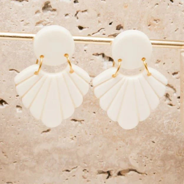 Boucles d’oreilles Flora FEEKA en acétate de couleur écru, avec fermoir attache poussoir. Matière : acétate et laiton doré. Dimensions : 5×2 cm