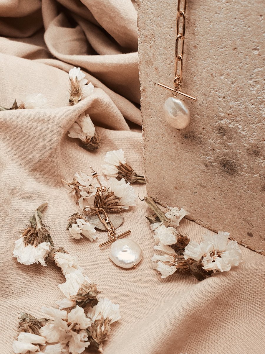 Tige droite et perles de culture ronde (10mm de diamètre).