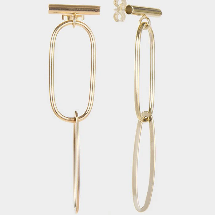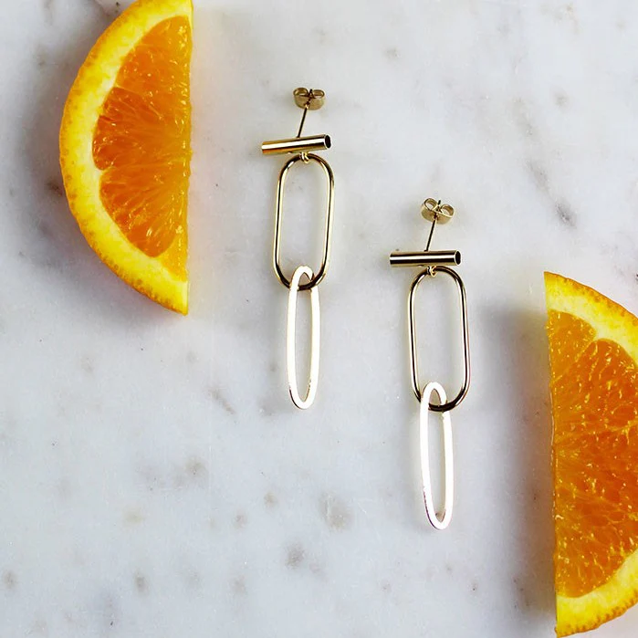 Boucles d’oreilles longues et pendantes à 2 anneaux noués.