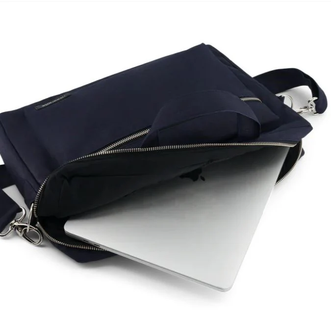 Il dispose d’un grand compartiment principal séparé en deux pour bien compartimenter vos affaires à l’intérieur du sac, d’une poche intérieure zippée pour y glisser clés, téléphone etc, et d’une poche extérieure zippée dans laquelle vous glisserez facilement vos chargeurs et carnets de notes.