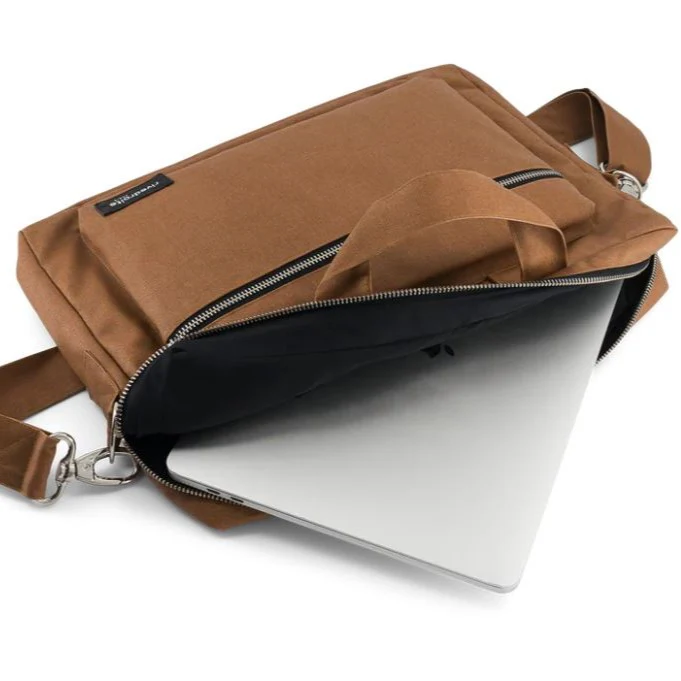 Il dispose d’un grand compartiment principal séparé en deux pour bien compartimenter vos affaires à l’intérieur du sac, d’une poche intérieure zippée pour y glisser clés, téléphone etc, et d’une poche extérieure zippée dans laquelle vous glisserez facilement vos chargeurs et carnets de notes.