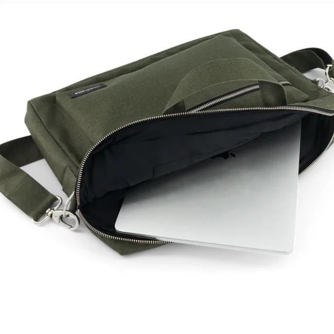 Il dispose d’un grand compartiment principal séparé en deux pour bien compartimenter vos affaires à l’intérieur du sac, d’une poche intérieure zippée pour y glisser clés, téléphone etc, et d’une poche extérieure zippée dans laquelle vous glisserez facilement vos chargeurs et carnets de notes.