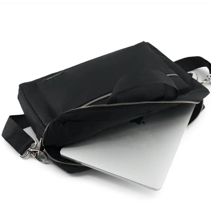 Il dispose d’un grand compartiment principal séparé en deux pour bien compartimenter vos affaires à l’intérieur du sac, d’une poche intérieure zippée pour y glisser clés, téléphone etc, et d’une poche extérieure zippée dans laquelle vous glisserez facilement vos chargeurs et carnets de notes.