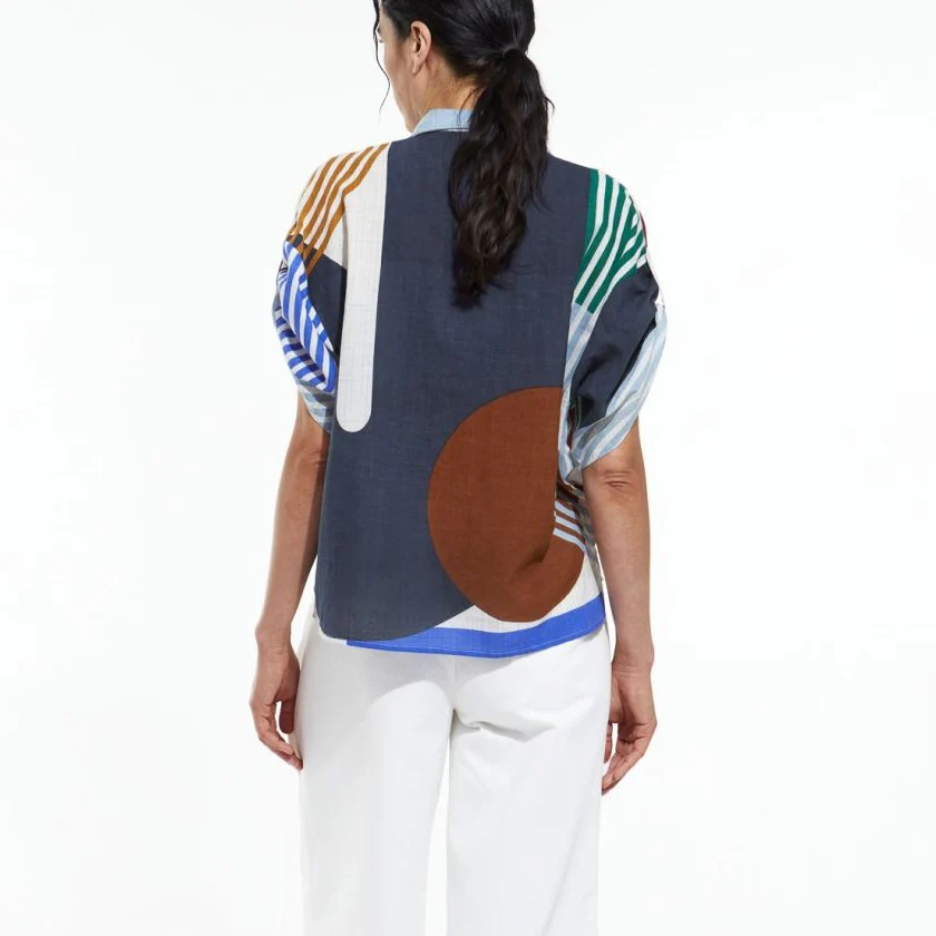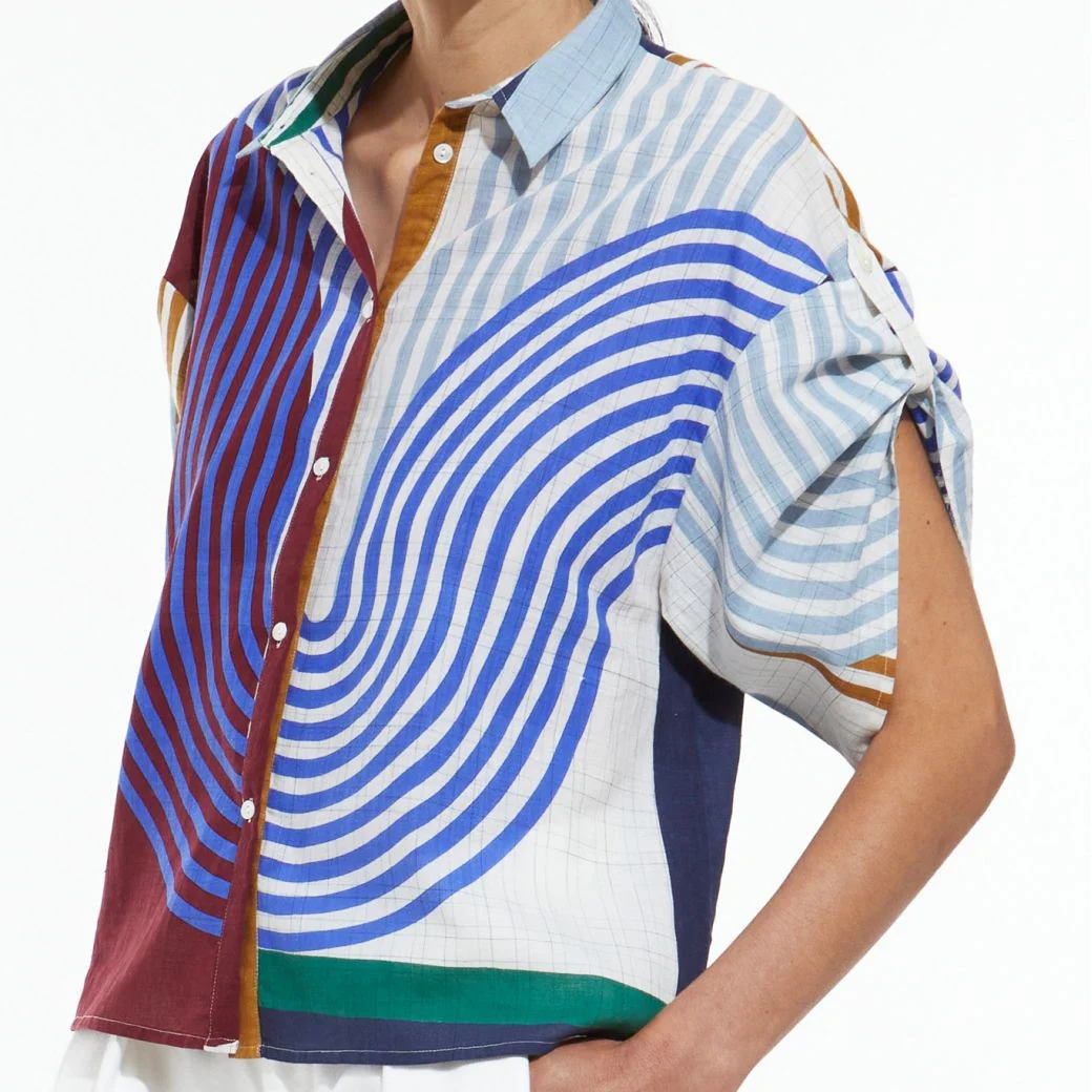 Chemise coupe droite et ample en coton imprimé motif ruisseau. Patte de boutonnage à l’avant. Manches courtes à revers avec patte de boutonnage à l’épaule. Boutons en nacre Taille unique (36-42) Composition : 100% coton