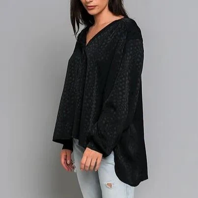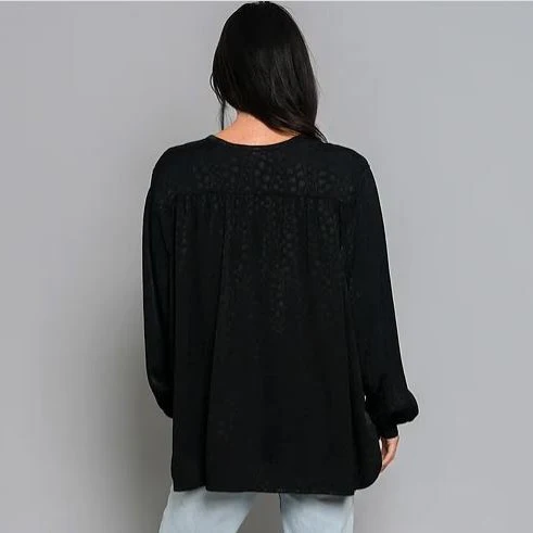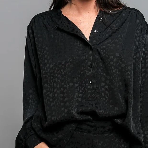 Chemise noire coupe ample boutonnée à l’avant et à manches resserrées