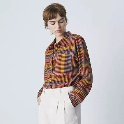 Chemise à imprimés graphiques indiens, toile très légère. 100% coton Lavage à 30°