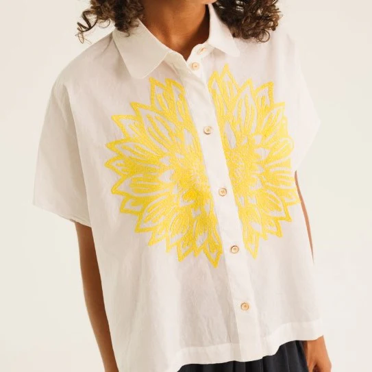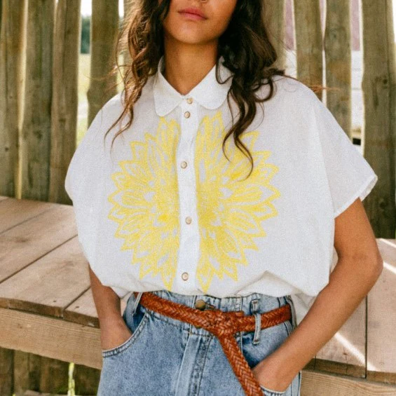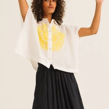 La chemise CINZIA se distingue par son volume “boxy” moderne et son col chemise arrondi. La broderie, parfaitement réalisée lui apporte toute son originalité. 100 % CotonLavage machine 30° délicat – Fer 2 points