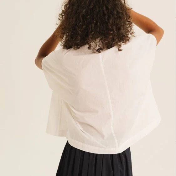 La chemise CINZIA se distingue par son volume “boxy” moderne et son col chemise arrondi.