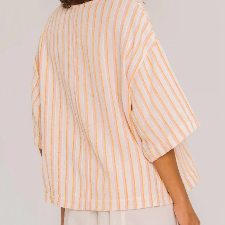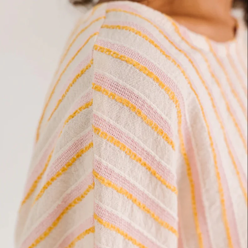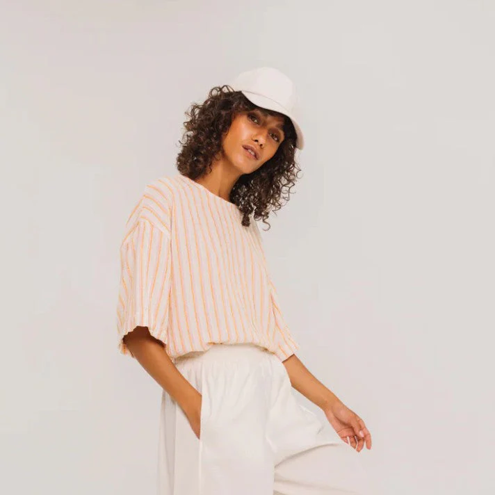 Top à manches courtes, coupe oversize et col rond. Une silhouette moderne et épurée, facile à porter au quotidien.