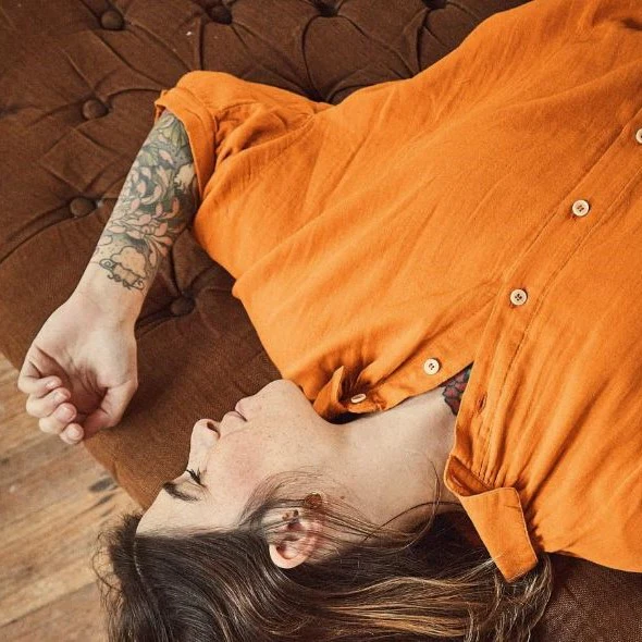 Chemise Neotine. Col, manches courtes et boutons sur l’avant. 100% coton issu de l’agriculture biologique.