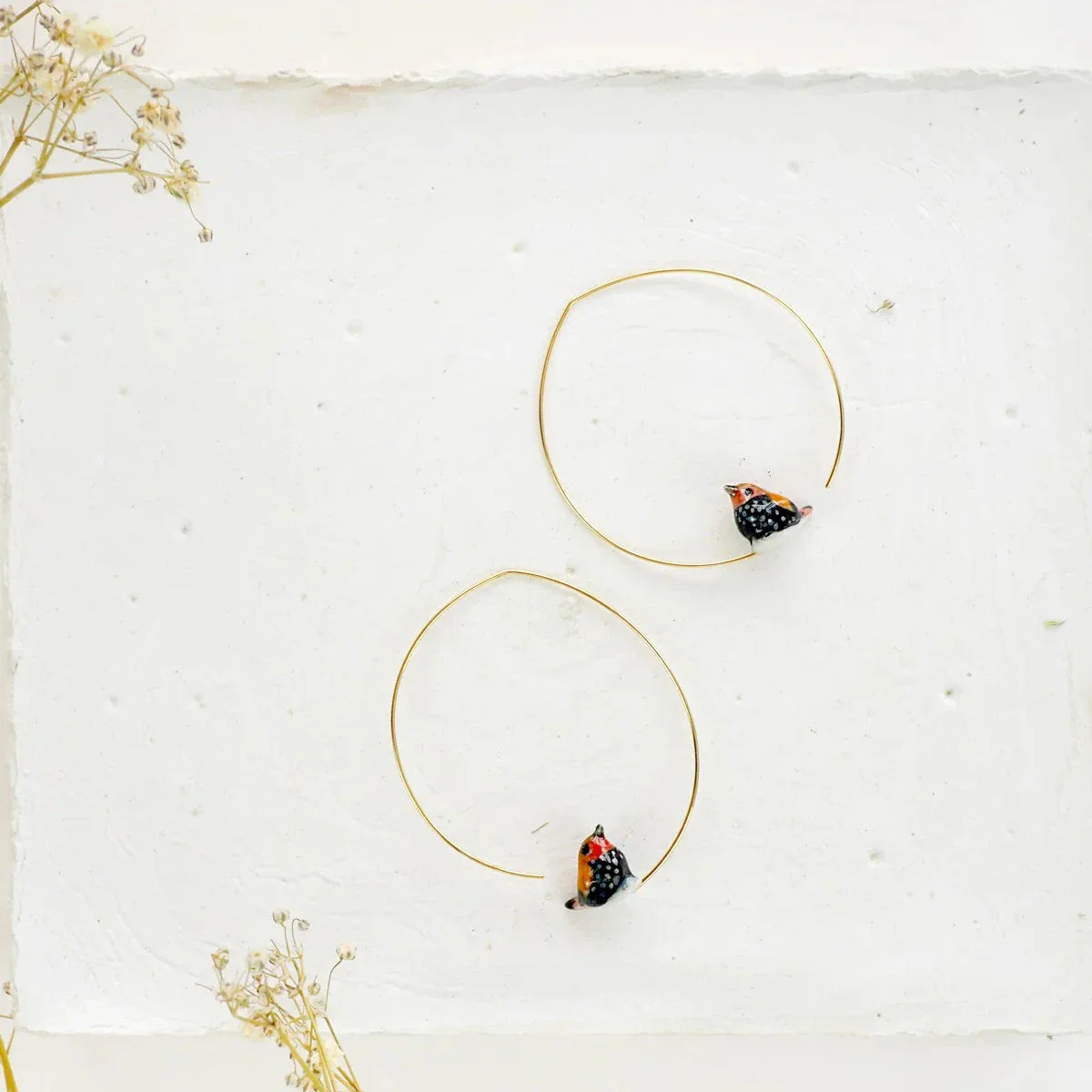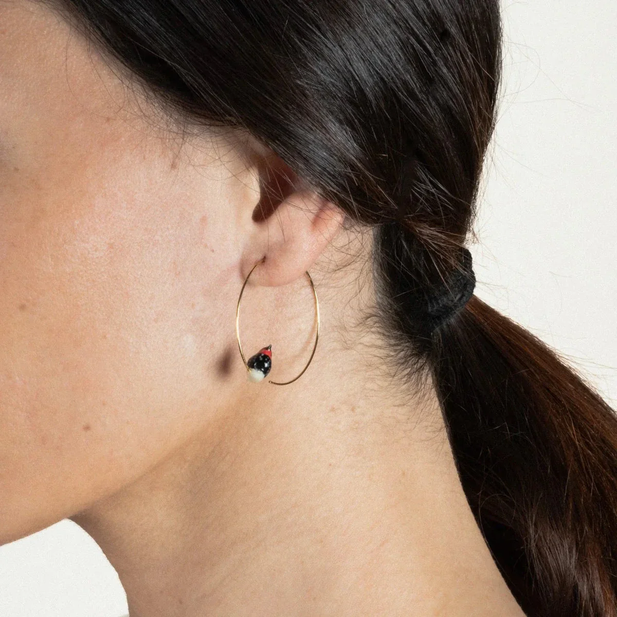 Laissez-vous séduire par l’élégance des boucles d’oreilles créoles oiseau noir et rouge, une création envoûtante des talentueuses créatrices de Nach !