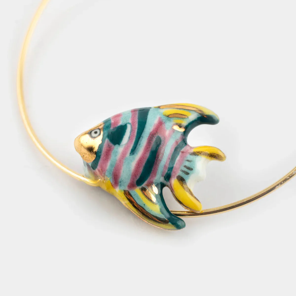 Ces créoles délicates sont ornées d’un poisson en porcelaine peinte à la main.