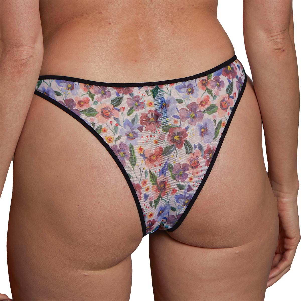 Tanga fleuri en tulle stretch, léger et respirant. Fin et discret même sous vos vêtements les plus près du corps, il vous offrira un confort assuré tout au long de la journée.