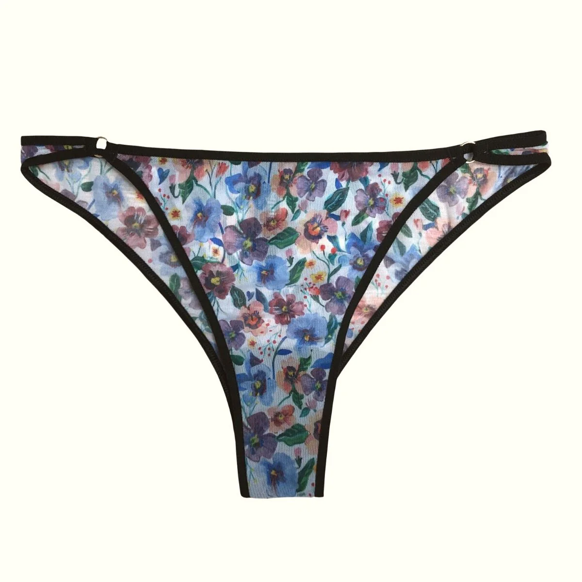 Tanga fleuri en tulle stretch, léger et respirant. Fin et discret même sous vos vêtements les plus près du corps, il vous offrira un confort assuré tout au long de la journée. Elastique contrasté noir : taille et tour de cuissesAnneaux or sur les côtésTulle stretch, 90% polyamide, 10% élasthanneFabriqué en Italie et au Portugal