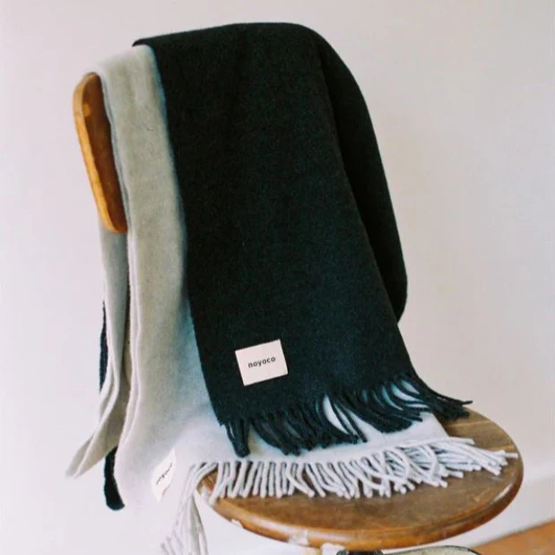 Longue écharpe unisexe tissée en laine et cachemire recyclés en Italie. Franges aux extrémités.