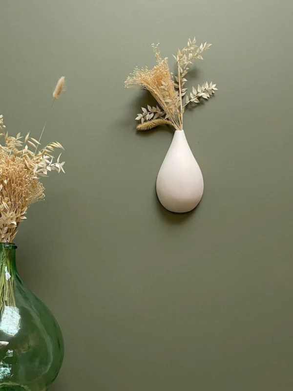 Une jolie goutte de terre en céramique aux formes rondes et pures, une décoration murale originale qui peut aussi accueillir des fleurs séchées.