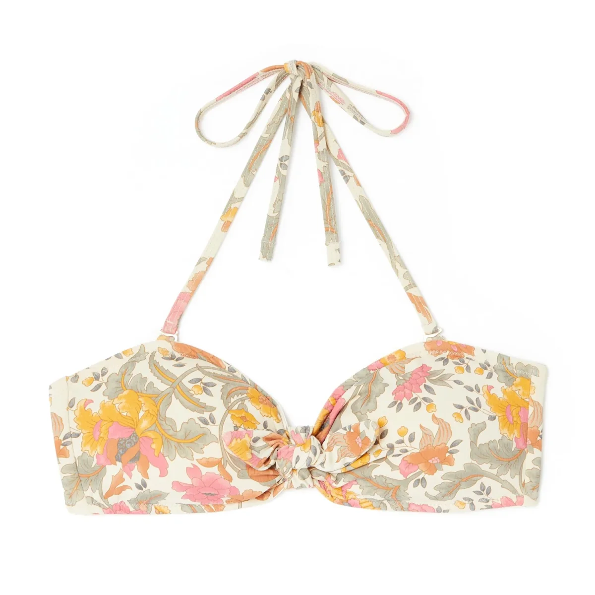 Haut de bikini bandeau, cette forme arrondie ultra tendance sublimera votre silhouette grâce à ses couleurs claires. Il se mariera parfaitement avec la culotte à volant taille haute YUMI pour un total look bohème sur la plage.