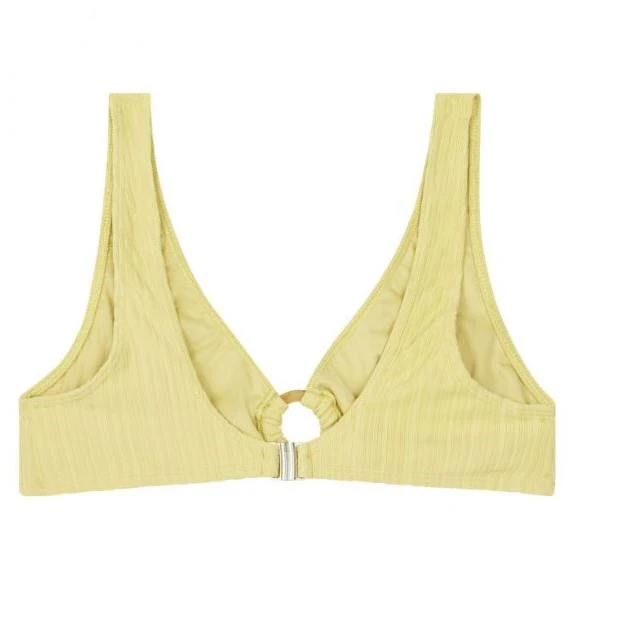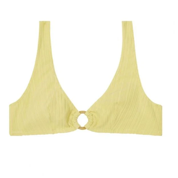 Haut de maillot de bain jaune clair, texture côtelée.