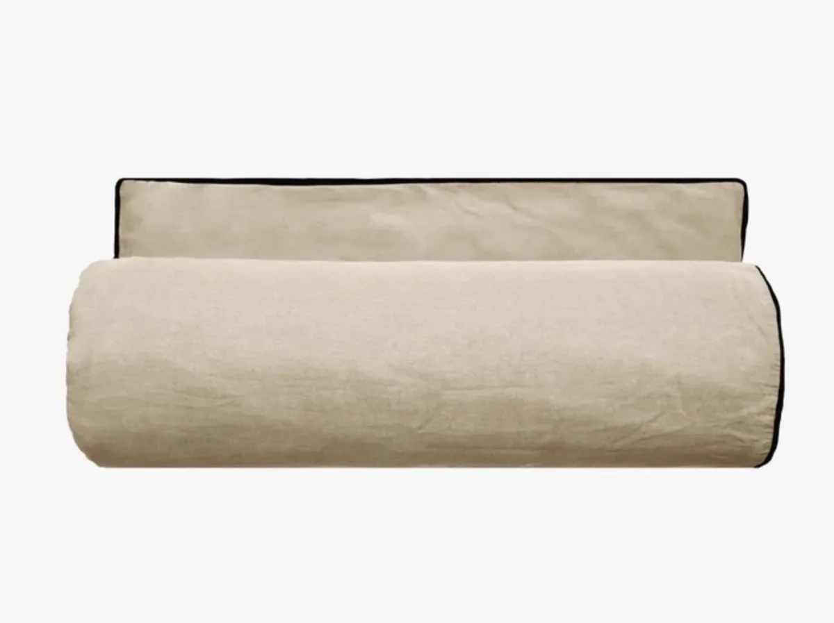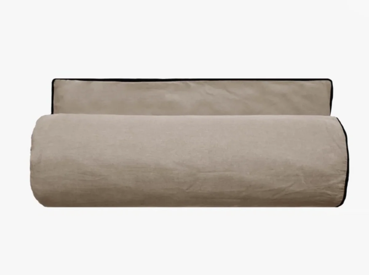 1 face 100% lin lavé 165 g/m² 47 fils/cm² – 1 face 100% coton teint lavé 63 fils/cm²