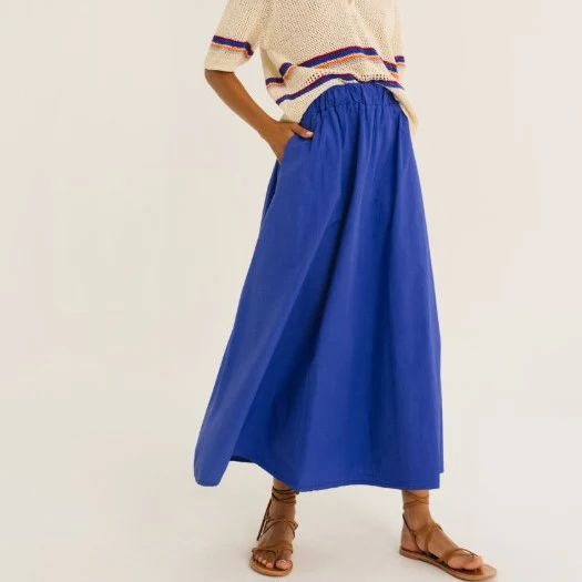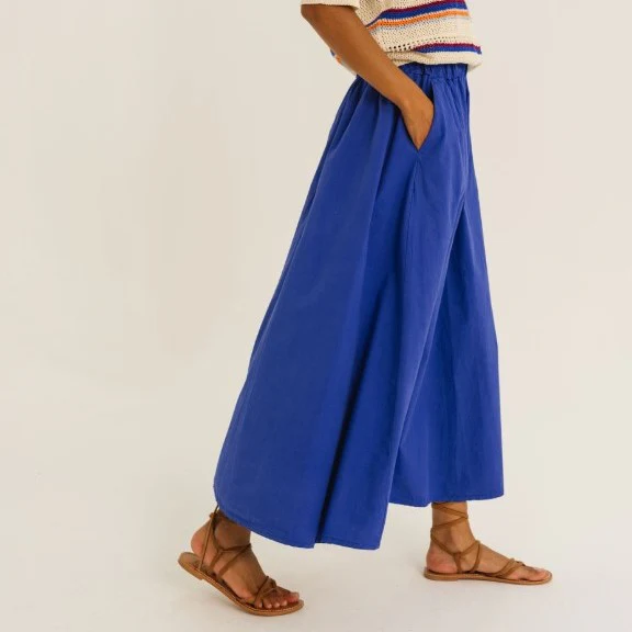 La jupe ALEX séduit par sa coupe évasée et sa taille élastiquée, offrant un confort optimal tout en soulignant la silhouette avec élégance. Ses deux poches fendues à l’avant apportent fonctionnalité et style, pour un rendu moderne et raffiné.