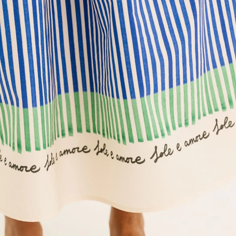 Coupée dans une toile de coton 100 %, elle se distingue par une rayure exclusive, imaginée et dessinée à Lyon dans notre studio de création, et imprimée spécialement pour Tinsels. CHRISTIE devient ainsi un incontournable facile à porter au quotidien, alliant élégance et modernité.