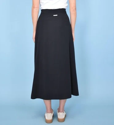 Jupe Midi modèle Nacha, fluide, coupe portefeuille taille haute qui sublime la silhouette.